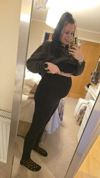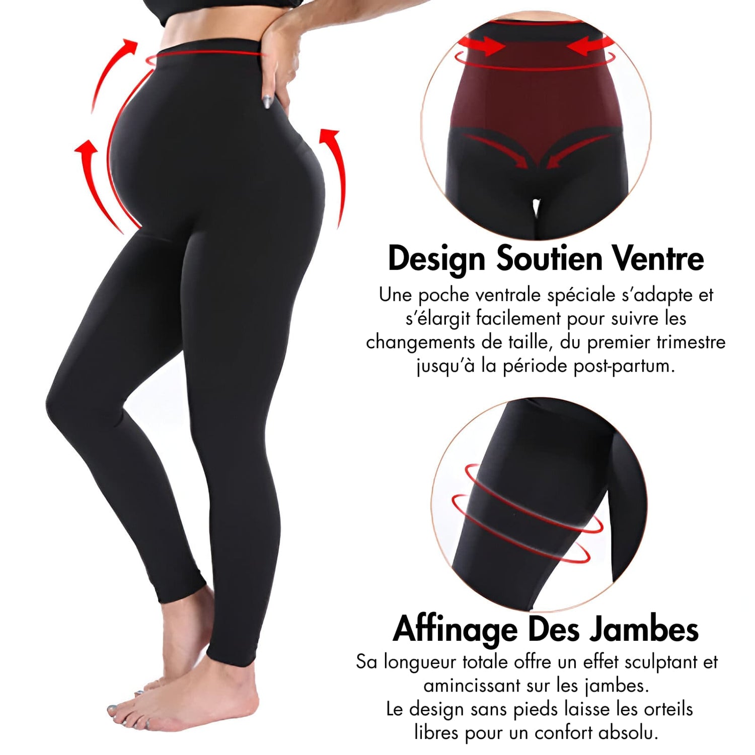 Oui, ce legging a été conçu pour accompagner votre corps du premier trimestre jusqu’à la période post-partum. Sa ceinture élastique et sa poche ventrale extensible s’ajustent naturellement à votre évolution.